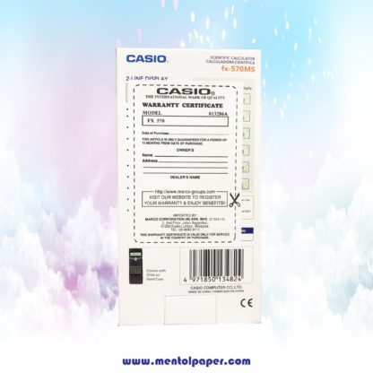Good Quality and Value For Money Product Scientific Calculator FX 570MS 401 Functions LR44 button battery included 2-Line Display / 10+2 Digits / Plastic Keys S-V.P.A.M. ~super visually perfect algebraic method Multi-replay function Matrix calculations Equation calculations Vector calculations Differential calculations SOLVE function Fraction Calculations Integration calculations Complex number calculations Engineering symbol calculations 40 Scientific calculations Base-n calculations/ conversions 40 Matrix conversions (20 conversion pairs) Combination and permutation Statistics (STAT-data editor, Standard deviation, Regression analysis) 9 Variables Logical operation CALC memory